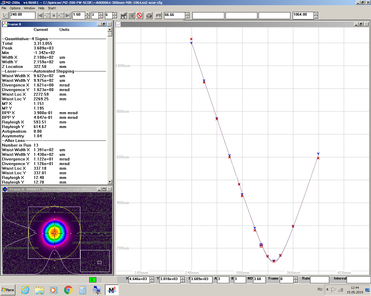 ANTAUS-20W型号典型M^2数据(20W,20 uJ,1 MHz,198 fs)