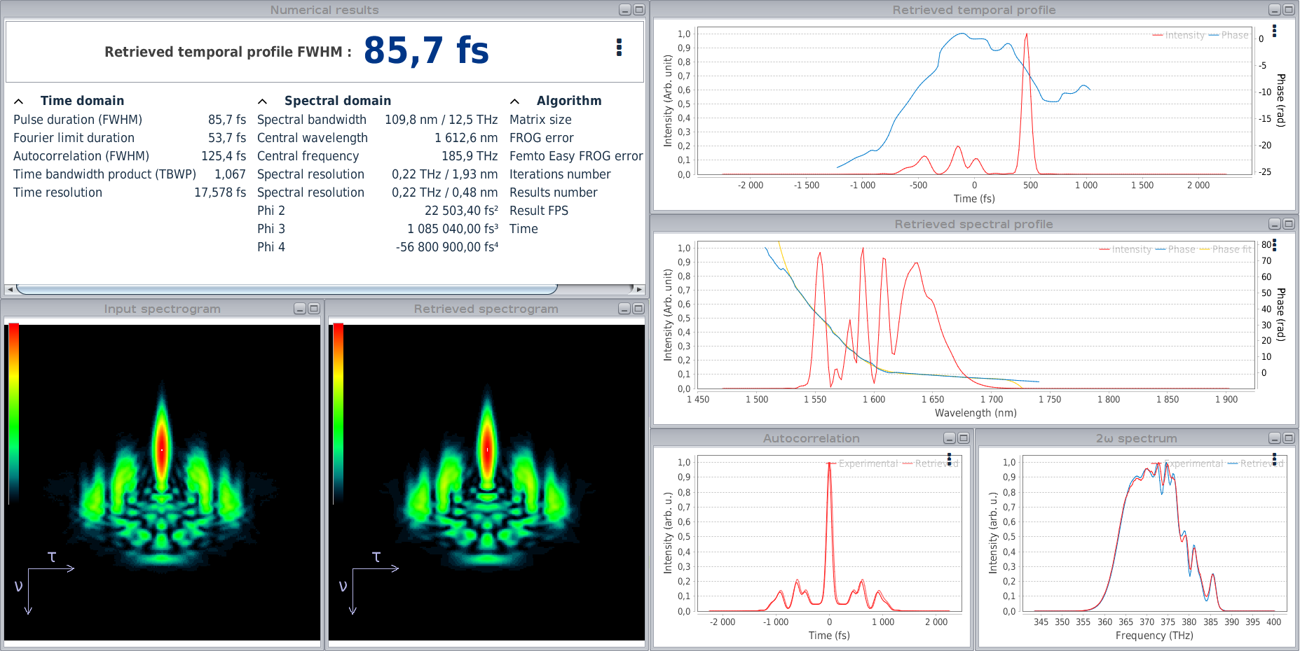 FEMTOEASY超短脉冲测量仪MS-FROG软件特性: