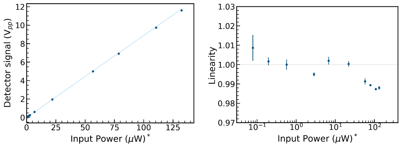 在 4 个数量级内,与理想线性度的偏差< 1%。
