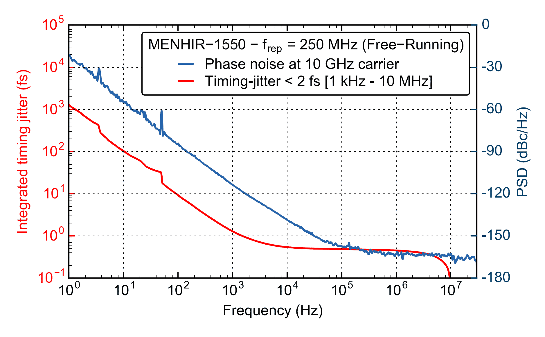 GHz高重频低噪声光纤飞秒激光器Menhir-1550典型曲线: