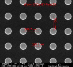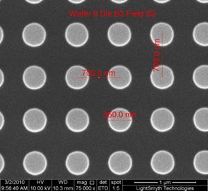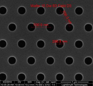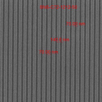 表中显示的尺寸代表目标值。周期的精度优于0.5%,而沟槽深度和线和空间的宽度可能与目标值相差15%。SEM用于说明目的。可定制更精确尺寸信息。