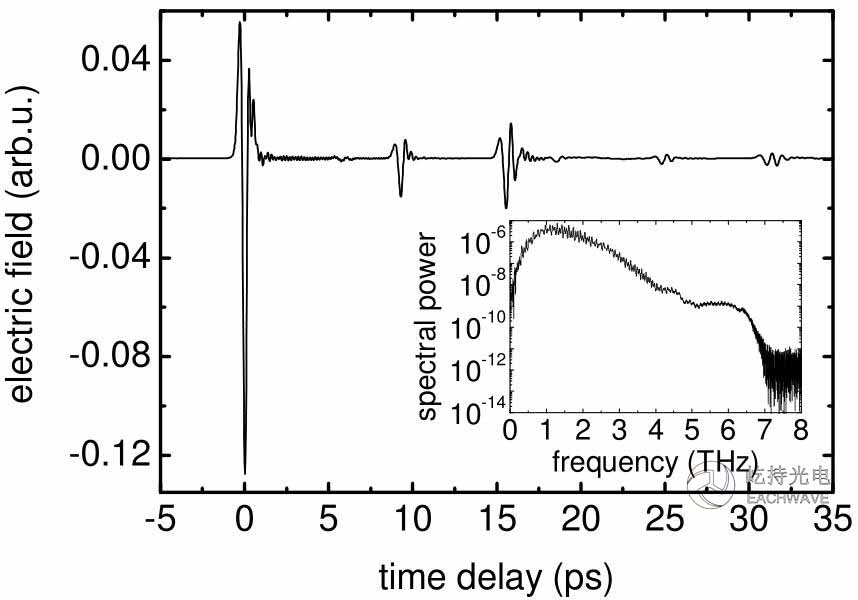 实验结果图为40fs钛蓝宝石激光泵浦宽谱光电导天线,400um厚GaP晶体探测的结果