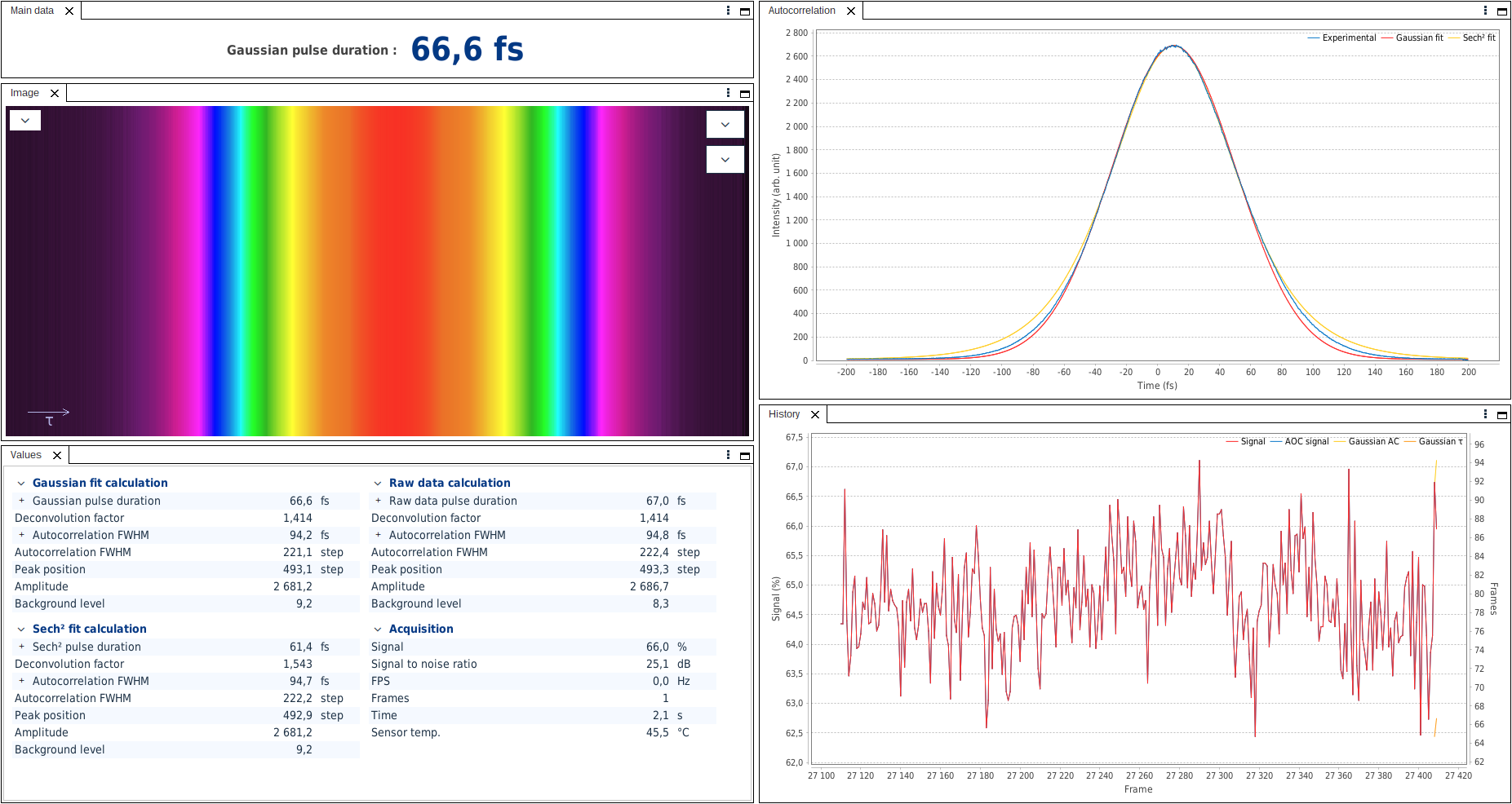 MS-ROC(Multi-Shot Row Optical AutoCorrelator)使用二阶扫描自相关实现脉冲宽度测量。Femto Easy MS-ROC多次自相关仪基于迈克尔逊干涉仪和二次谐波生成(SHG 自相关)。不同的型号允许分析低至 4 fs 的超短脉冲和 80 ps 的长脉冲,即使对于 pJ 和 nJ 范围内的低脉冲能量也是如此。高达 130ps/s 的高扫描速度是实时测量的理想选择。由于双测量模式,具有大扫描范围的 ROC 模型也实现了高达 50 阿秒的极高时间分辨率。