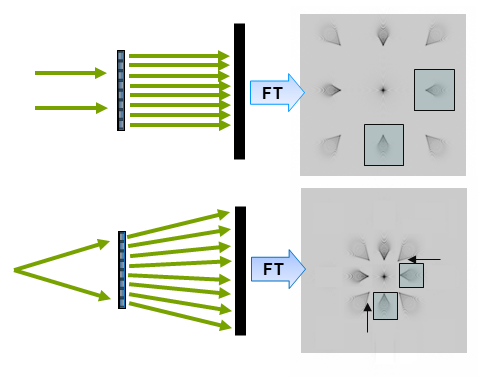 Phasics四波横向剪切干涉(上海九游会j9官方网站光电代理):当待测波前经过波前分析仪时,光波通过特制光栅(图1)后得到一个与其自身有一定横向位移的复制光束,此复制光波与待测光波发生干涉,形成横向剪切干涉,两者重合部位出现干涉条纹(图2)。被测波前可能为平面波或者汇聚波,对于平面横向剪切干涉,为被测波前在其自身平面内发生微小位移发生微小位移产生一个复制光波;而对于汇聚横向剪切干涉,复制光波由汇聚波绕其曲率中心转动产生。干涉条纹中包含有原始波前的差分信息,通过特定的分析和定量计算梳理(反傅里叶变换)可以再现原始波前(图3)。