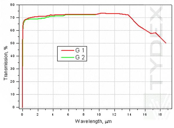根据应用,我们使用两种等级的CVD - 具有不同光学性质的ZnSe。8um以上无差异(见图1)。