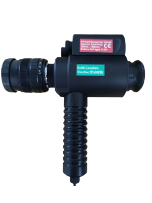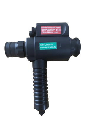 Abris-M红外激光观察镜红外观察仪是高性能的图像转换观察镜。其通过将被观测物体所反射或发射的光聚焦到摄像管里而进行观察的,光谱响应范围覆盖270~2000 nm。它体积小,重量轻,结构紧凑,手持式方便自由操作,顶端内螺纹规格为1/4-20,内置一节1.5V 的“AAA”型号电池,也可外接3V 的电源(选购)。通过持续按住其上的按钮来提供所需电源。一旦加上电源,内置的V 电池将产生16-18 KV 的高压,足以加速电子图像到输出屏处。输出的绿色的荧光(波长550 nm)可以通过调整目镜看到。