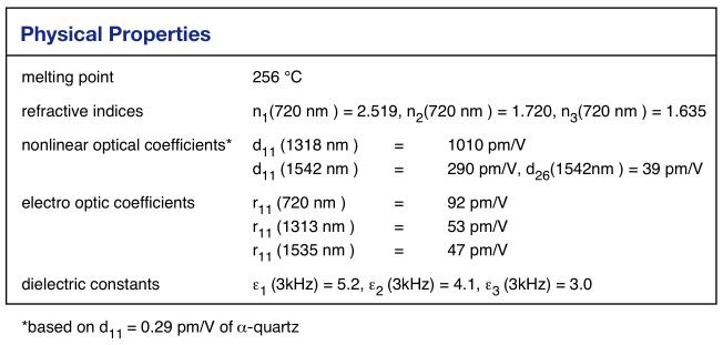 —大的非线性光学系数 (d11 > 1000 pm/V)