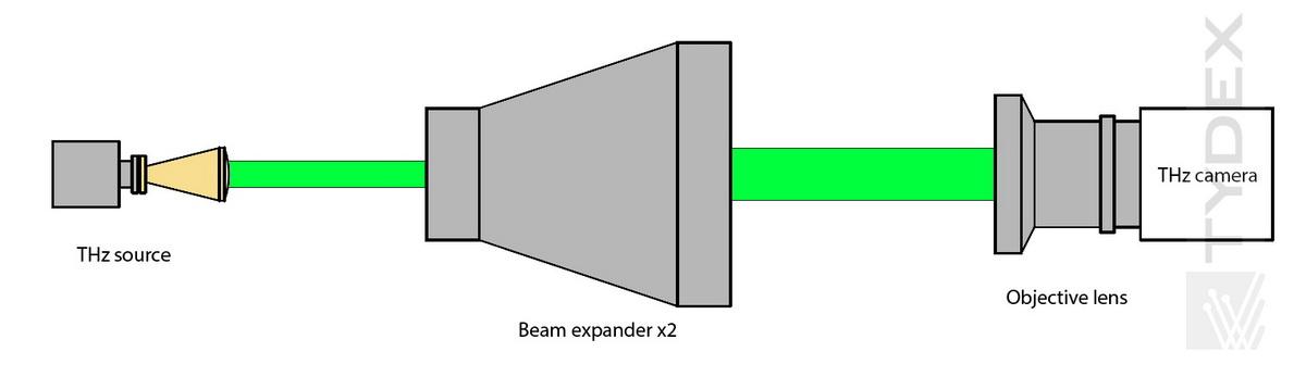 太赫兹光束扩束器可以用于扩展或者缩小平行的太赫兹光束直径。两透镜伽利略望远镜系统组成的太赫兹扩束器在成像系统中可以提供低的像差水平。这些太赫兹扩束器都是衍射有限系统,从而降低了光束发散的影响。光束扩展器可以使得聚焦太赫兹光束至衍射极限的光斑尺寸,由此可以获得一束太赫兹光的功率密度最大值。