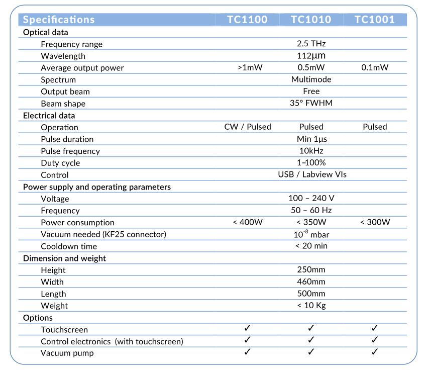 >> 太赫兹量子级联激光器THz-QCL: EasyQCL-1000