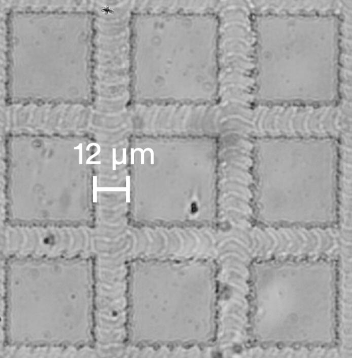 图4:PET上ITO的精确图案化,特征尺寸为12um
