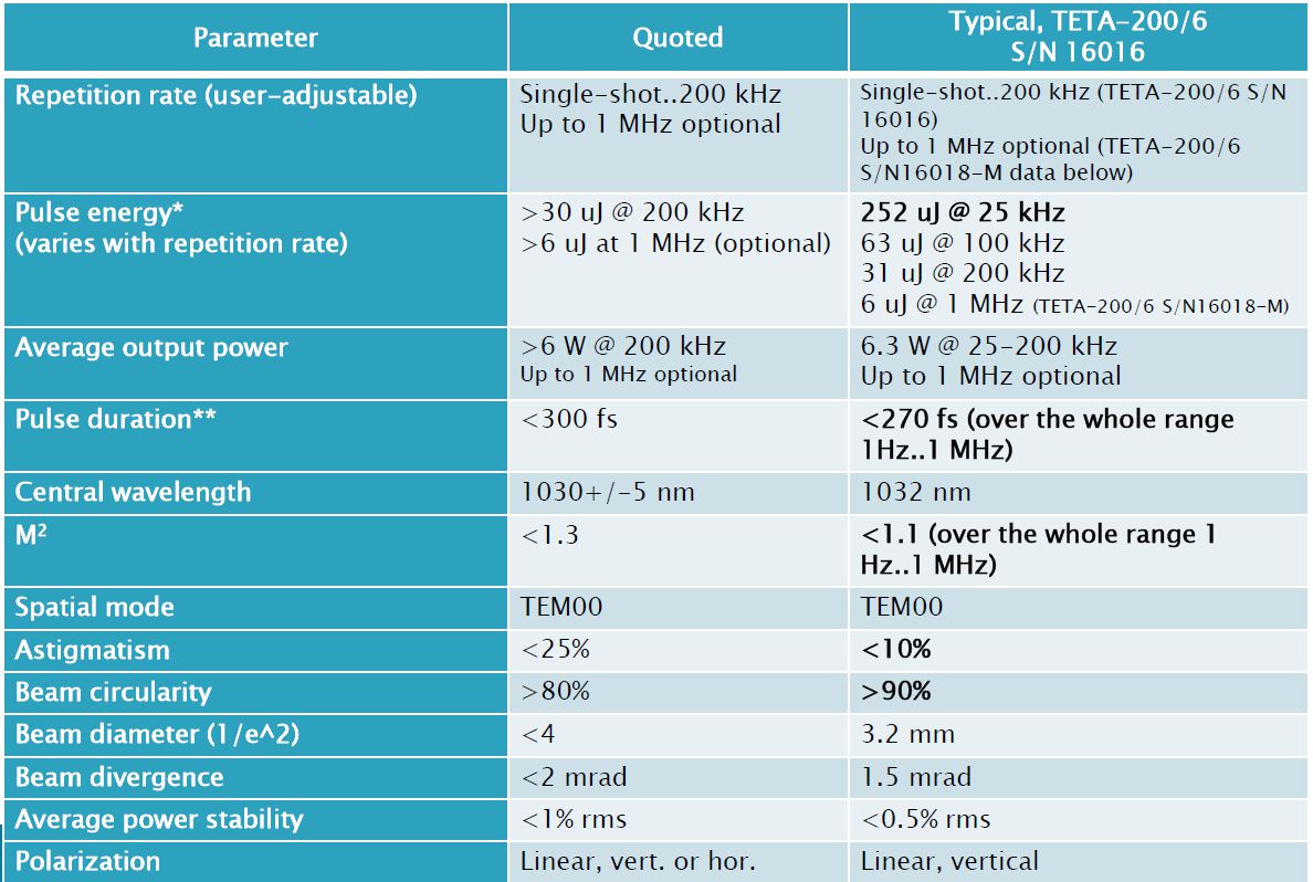 TETA激光系统是可靠、灵活飞秒激光光源,在微加工系统、太赫兹成像、OPA泵浦、遥感和超快光谱等领域有着广泛应用。