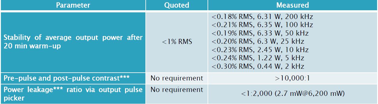 *** Spectra-Physics Spirit: pre-pulse对比度: >250:1, post-pulse: 无数据