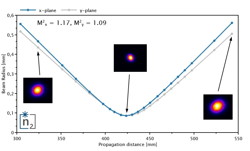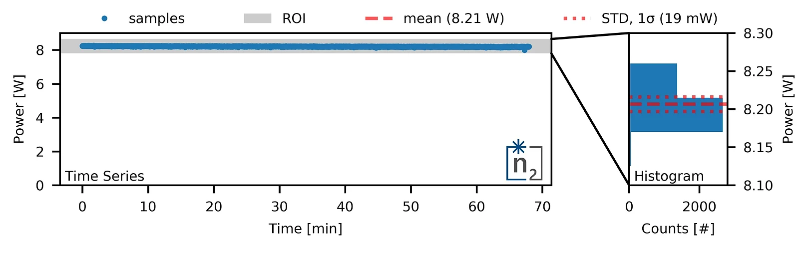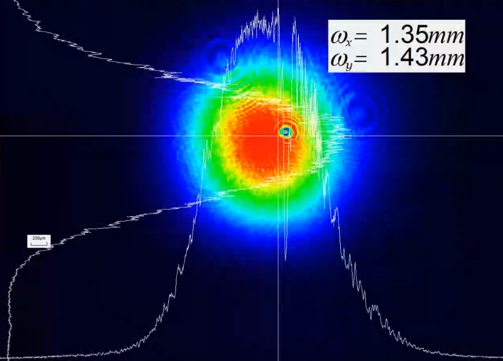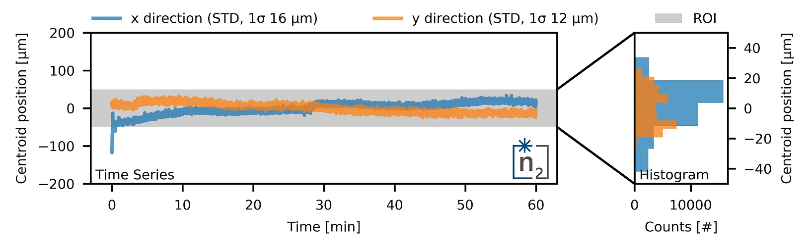 跟踪梁横截面的质心大约需要1小时,MIKS1_S 输出孔径后方 1 米处,请注意,质心波动的标准偏差小于光束直径的 1% (1/e2)。