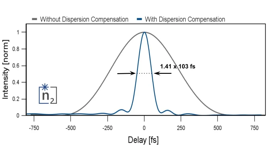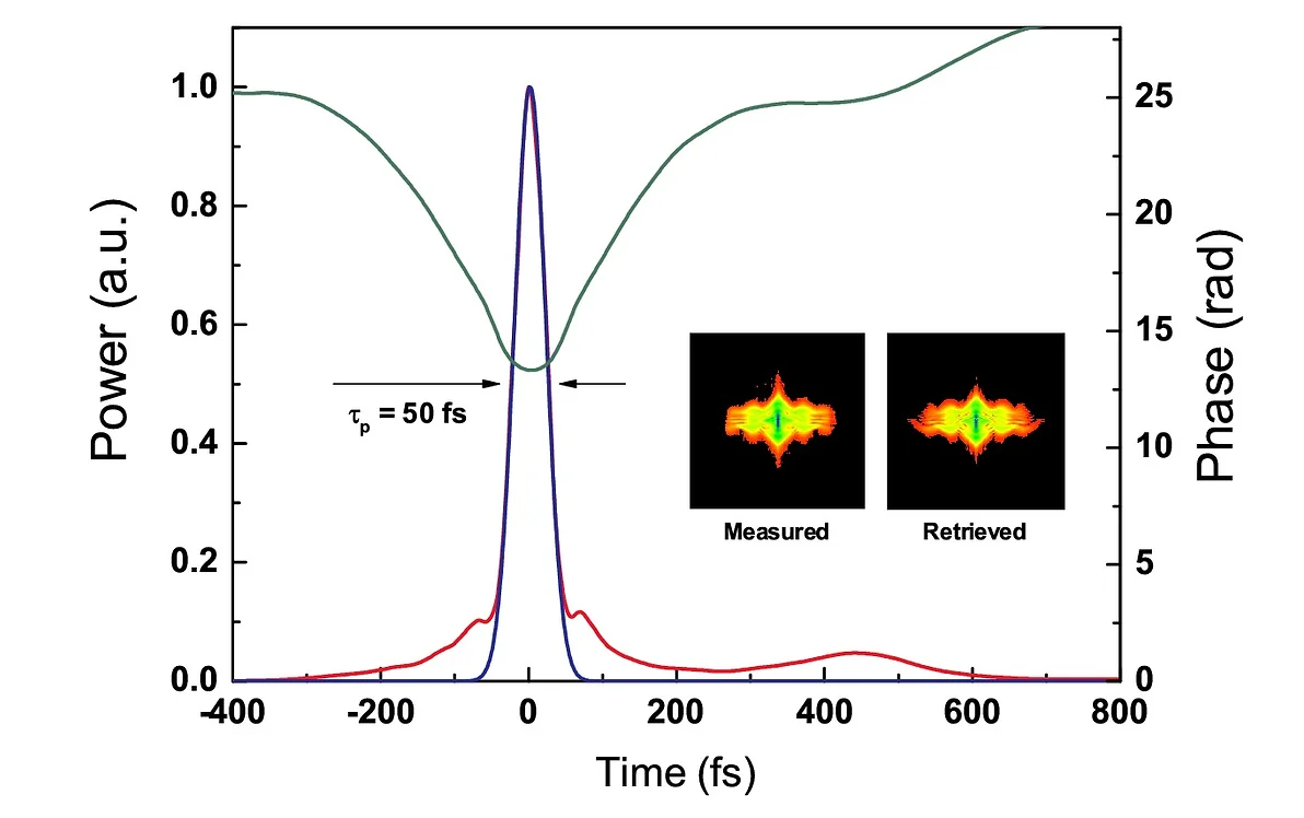最重要的是,我们补偿了微加工装置中的光学器件引入的额外色散。这样我们就可以在实际工件上实现低于 100 fs 的脉冲持续时间。