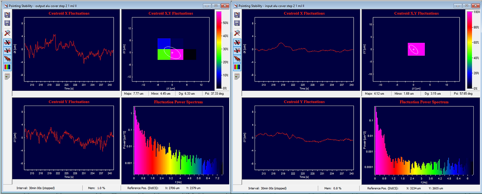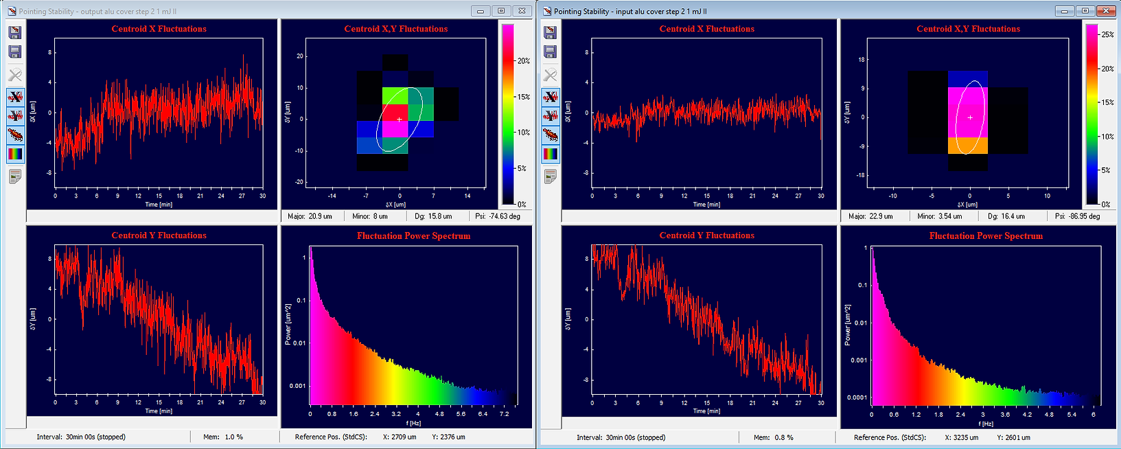 光束指向(长期,30 分钟)左图为输出。右图为输入。