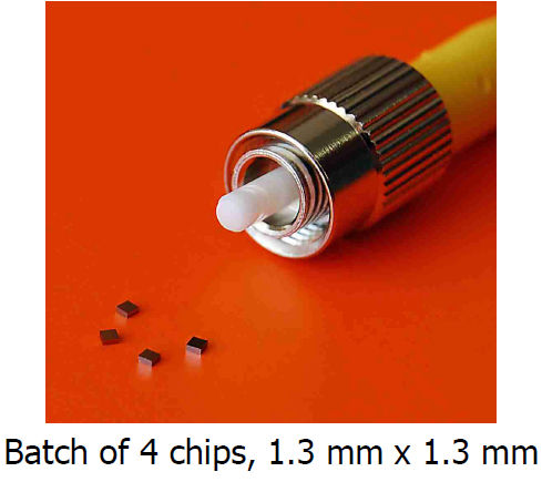 采用尺寸为1.3 mm x 1.3 mm的小型SAM芯片(光路中没有任何胶水)对接可获得稳定结构。