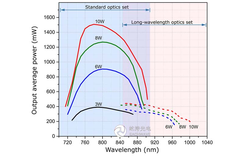 TiF-100激光器可选配一组额外的反射镜,以支持波长高达970 nm的激光振荡和锁模。附加的长波反射镜组可以在工厂预先安装,也可以由最终用户现场安装。